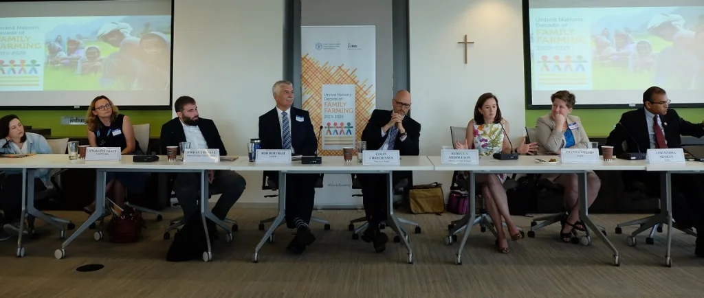 We saw this conflict on display at the Washington D.C. launch event for the Decade on Family Farming this past August. The event was sponsored by the UN Food and Agriculture Organization, the UN International Fund for Agricultural Development, and the Alliance to End Hunger, and was meant to show how government, the private sector, and civil society could work together to achieve the goals of the Decade. To that end, the panel featured speakers from the Trump Administration, a multinational agribusiness company, and an international nonprofit that provides chemical fertilizer to farmers in Africa. However, their views were starkly contrasted by the only farmer organization on the panel the National Family Farm Coalition (NFFC), which represents 30 small and medium-sized family farmers in 42 states in the U.S. and is a member of La Via Campesina.