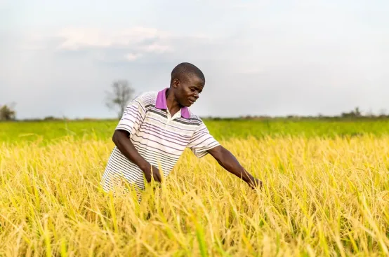 Simon Abidi in his rice field, Tanzania 2018 [Hans Ngoteya/ActionAid]